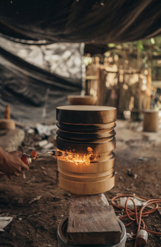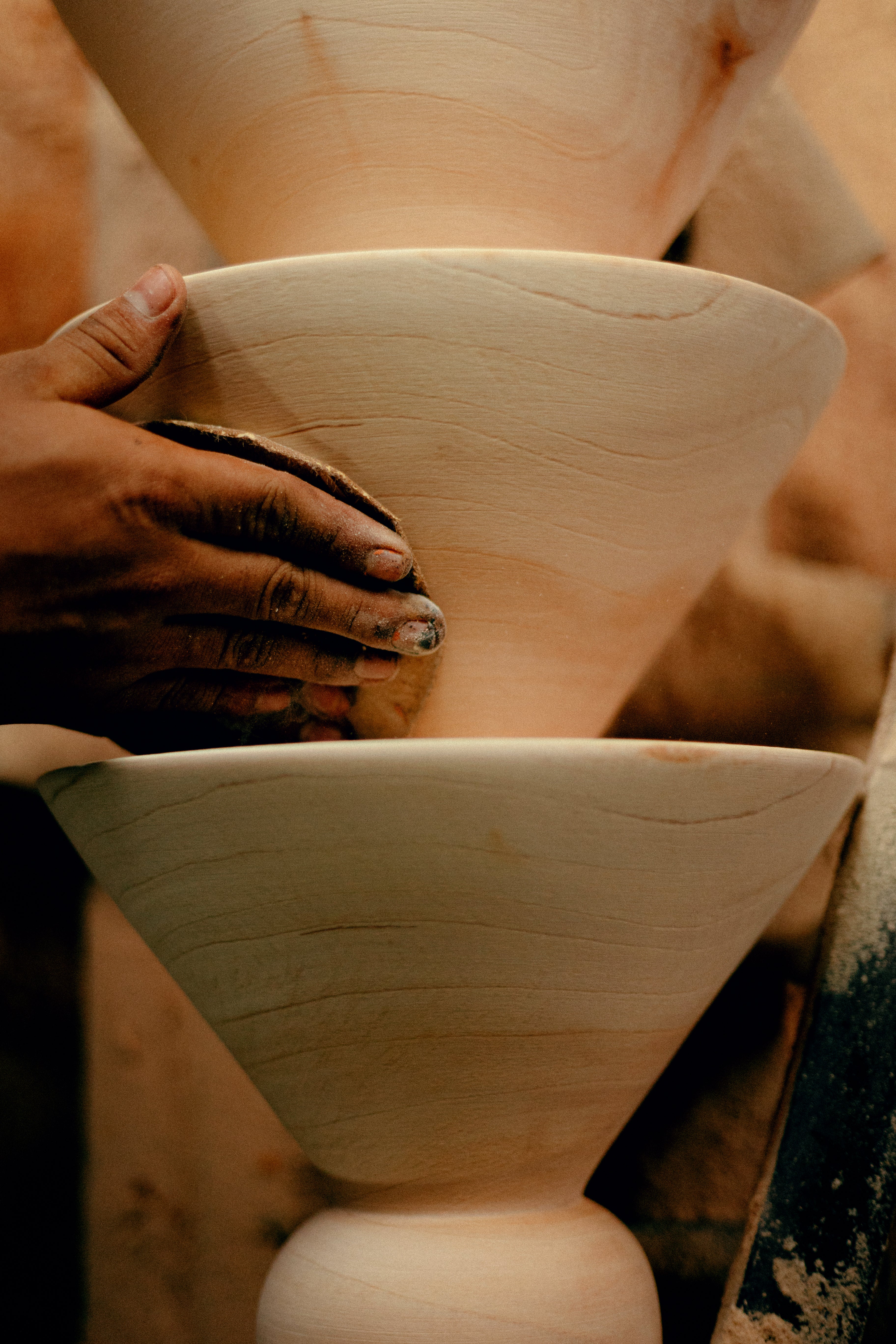 We honor the art of woodturning — shaping each piece on the lathe with precision and care. This handcrafted process allows us to create unique, sculptural forms that highlight the natural grain and texture of the wood, blending tradition with modern design.